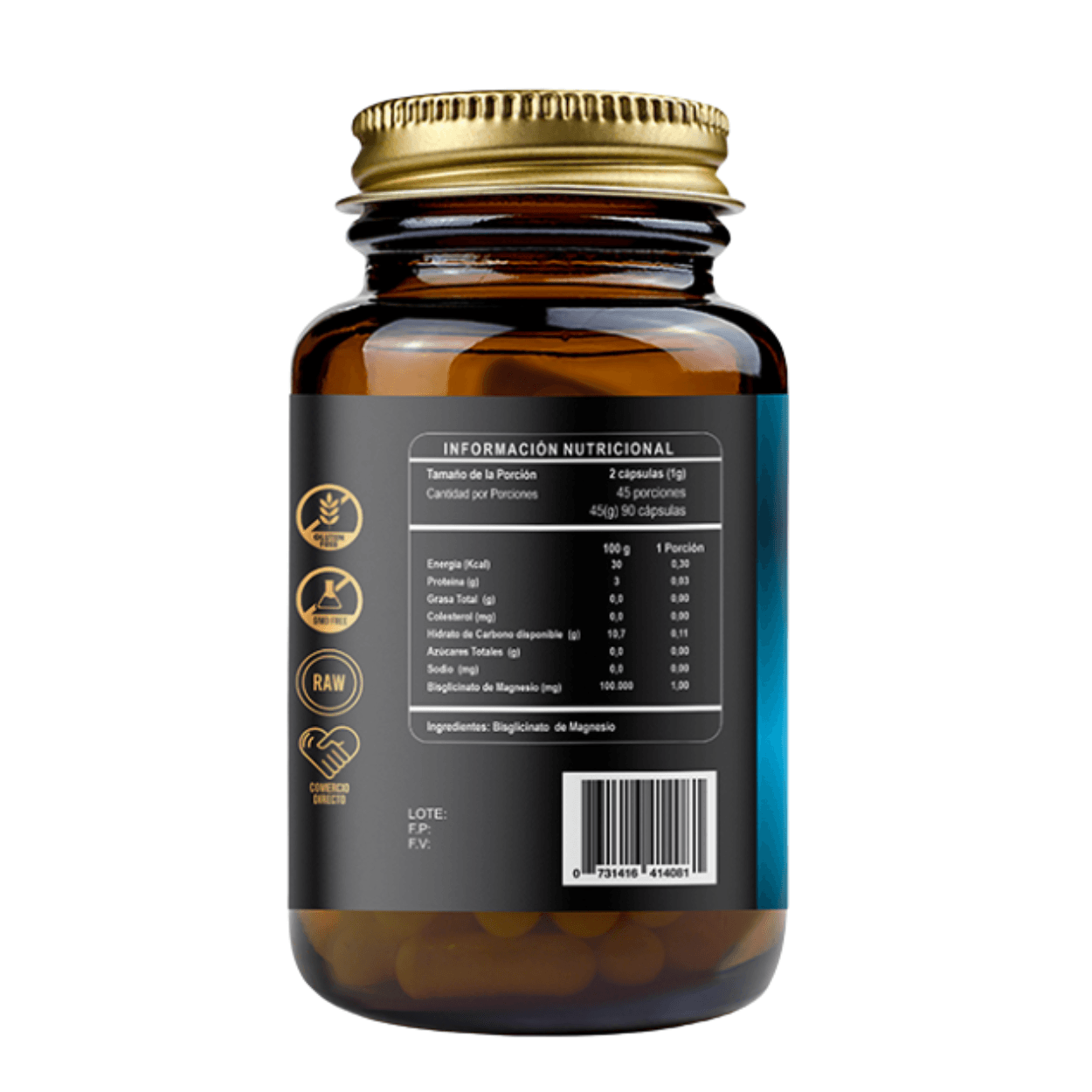 Bisglicinato de Magnesio 90 Cápsulas. El Bisglicinato de Magnesio es una forma de magnesio altamente biodisponible, ideal para quienes buscan mejorar la relajación muscular, reducir el estrés y mantener niveles óptimos de energía. Su fácil absorción lo convierte en una opción eficaz para promover el bienestar general y la salud ósea. Beneficios Clave: Alta biodisponibilidad para una absorción óptima Relaja los músculos y reduce calambres Apoya la salud ósea y cardiovascular Contribuye al bienestar general y al manejo del estrés Modo de Uso: Tomar 2 cápsula al día, preferentemente con las comidas.