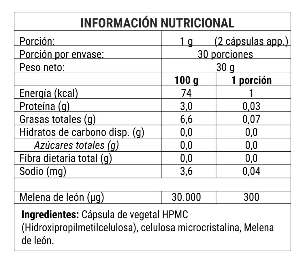 Melena de León es un hongo funcional utilizado en la Medicina Tradicional China por cientos de años. Disfruta de los beneficios de un hongo funcional en formato de cápsulas sin azúcar añadida. Un complemento alimenticio para mejorar tu bienestar de manera natural y práctica.