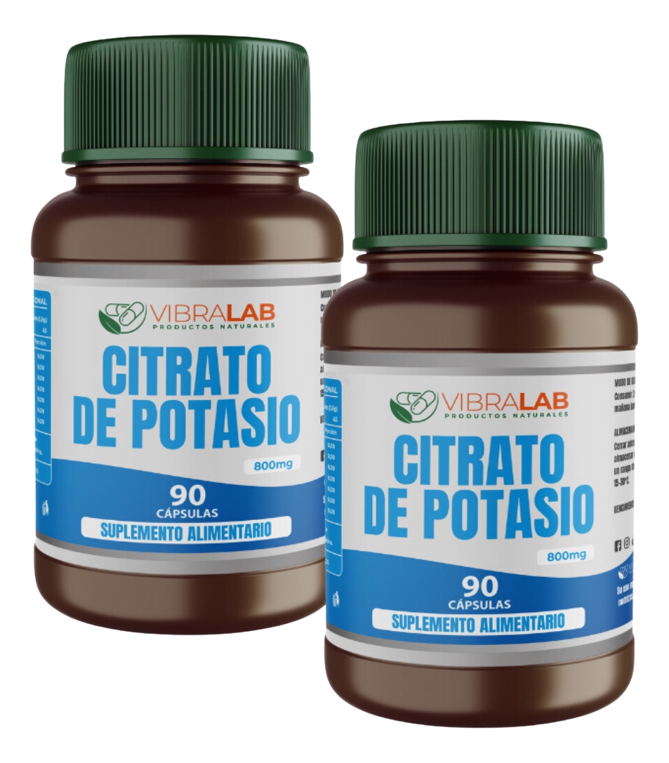 Pack 2 Citrato Potasio 90 cápsulas 800mg 100% Natural y libre de gluten.