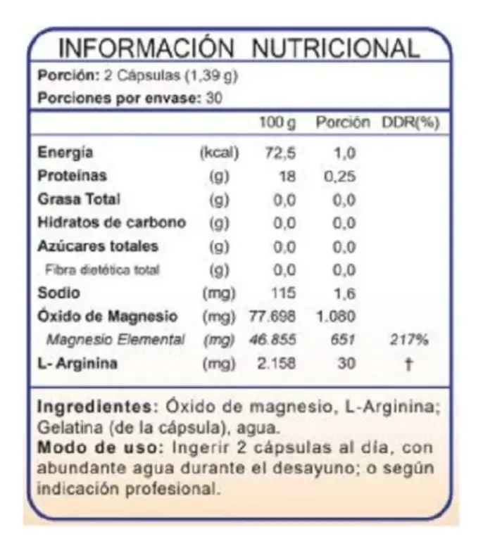 El Magnesio Quelado o Aminoquelado es una mezcla de Magnesio Carbonato y L-Arginina.