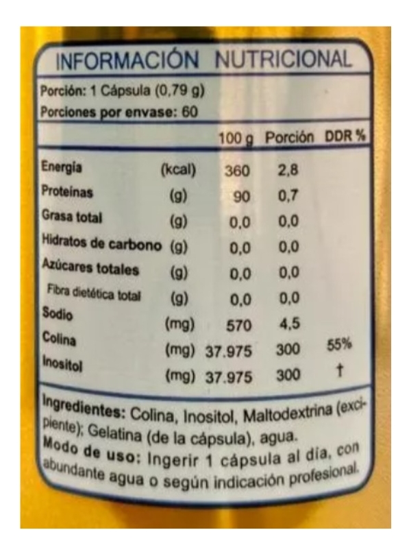 Pack Colina + Inositol 300 mg Fnl 3 frascos de 60 capsulas, en total 180 capsulas de gelatina.