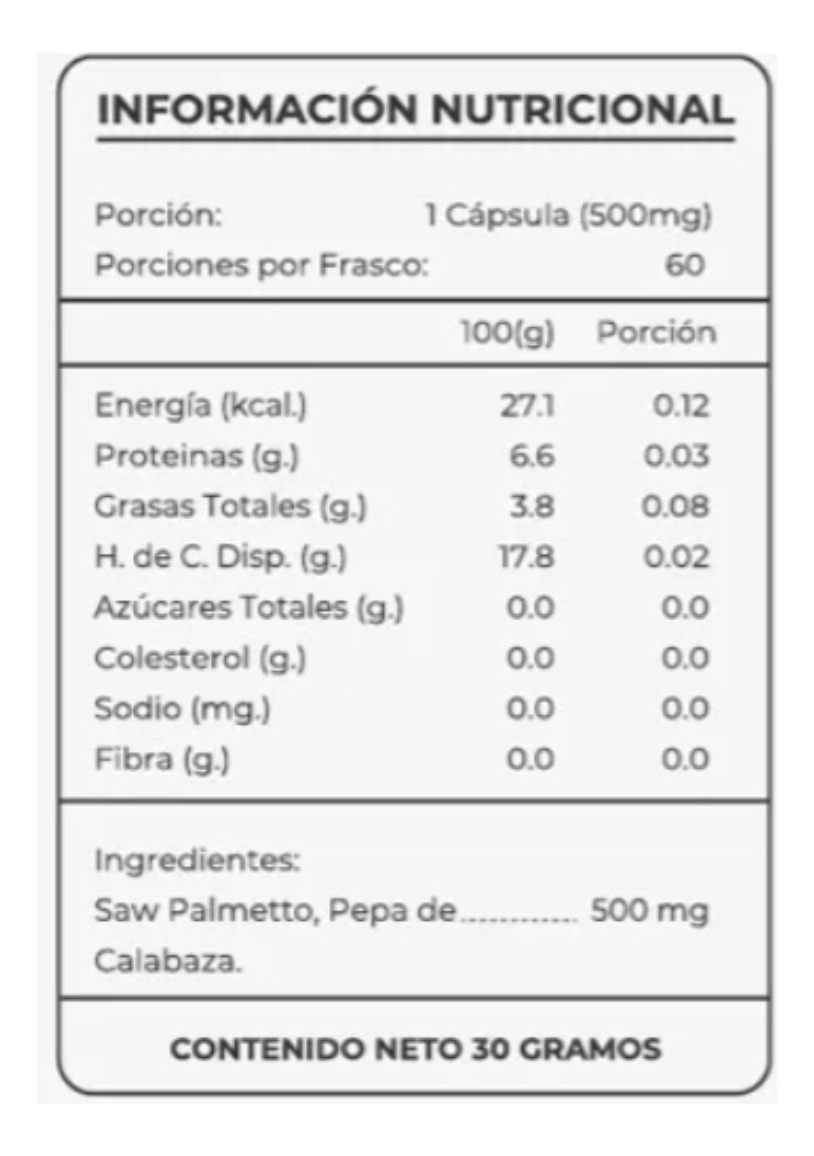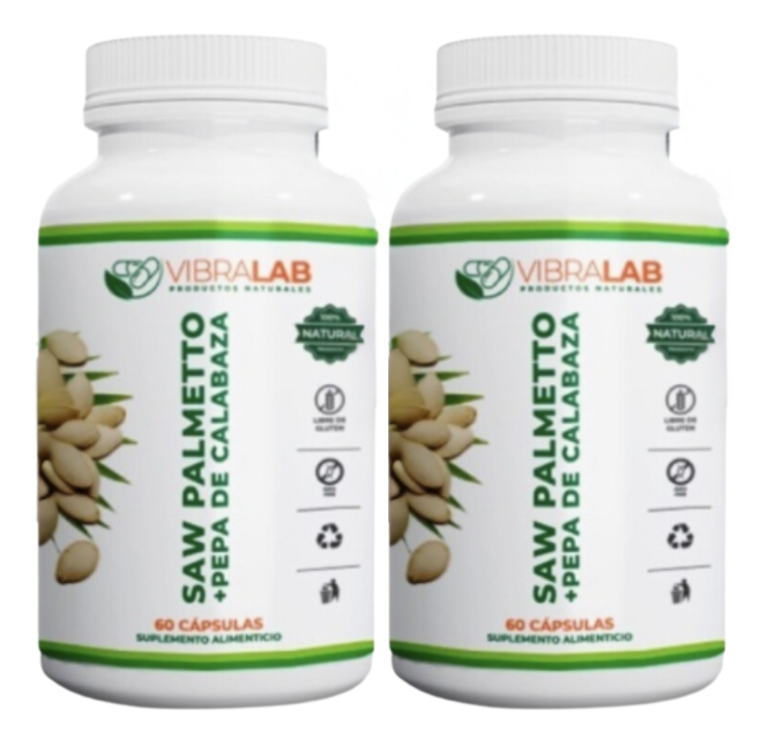 Pack SAW PALMETTO + PEPA DE CALABAZA viene en presentación de 60 cápsulas. (120 capsulas en total)